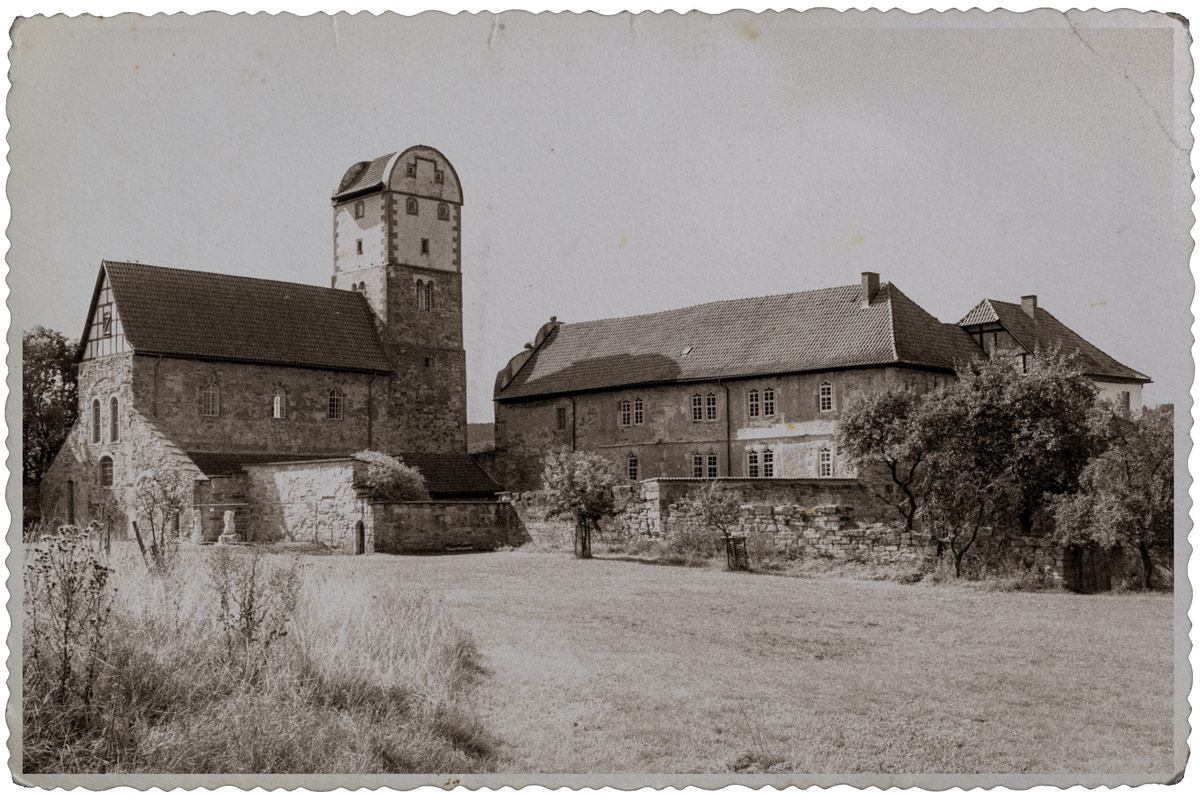 Die romanische Klosterbasilika in Herrenbreitungen ist ein historisches Gebäude in Thüringen, Deutschland. Die Klosterbasilika wurde im 12. Jahrhundert erbaut und ist ein herausragendes Beispiel romanischer Architektur in der Region. Das Kloster Herrenbreitungen gehörte zu den Prämonstratensern. Das "alte Foto" könnte aus den 1960er Jahren stammen.