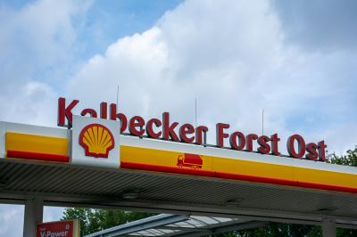 Schriftzug über der Autobahntankstelle Kalbecker Forst Ost in Nordrhein-Westfalen.