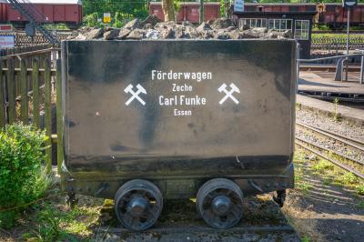 Dieser alte Förderwagen kam in der Zeche Carl Funke, einem ehemaligen Steinkohlebergwerk in Essen-Heisingen (NRW), zum Einsatz. In verschieden Regionen wird der Förderwagen auch Hunt oder Lore genannt.