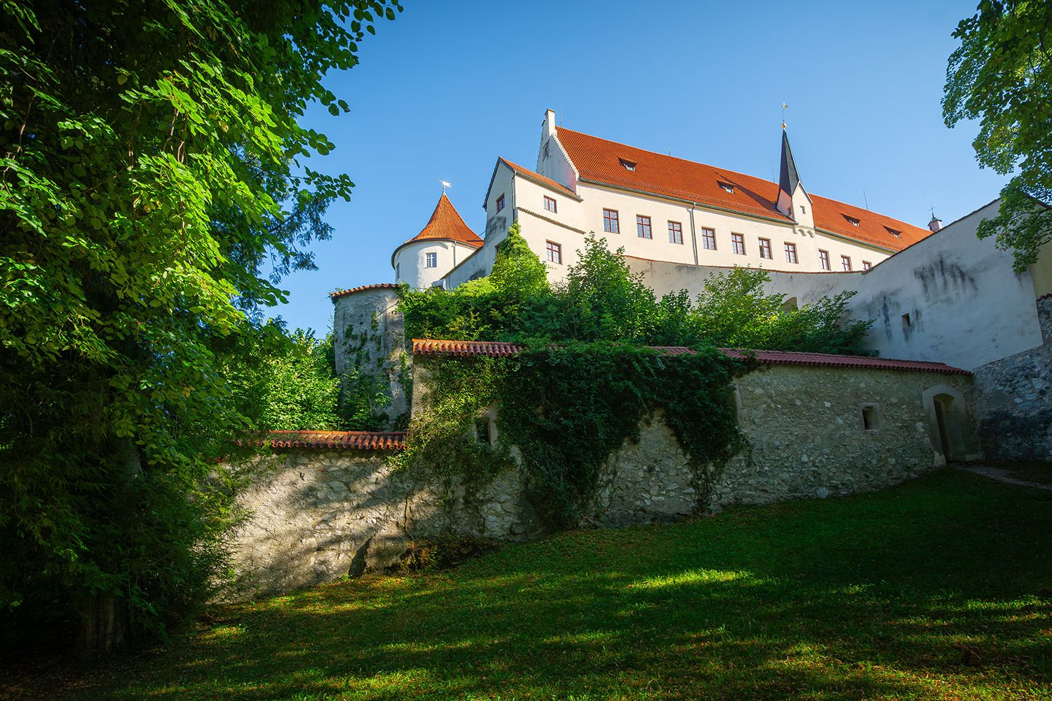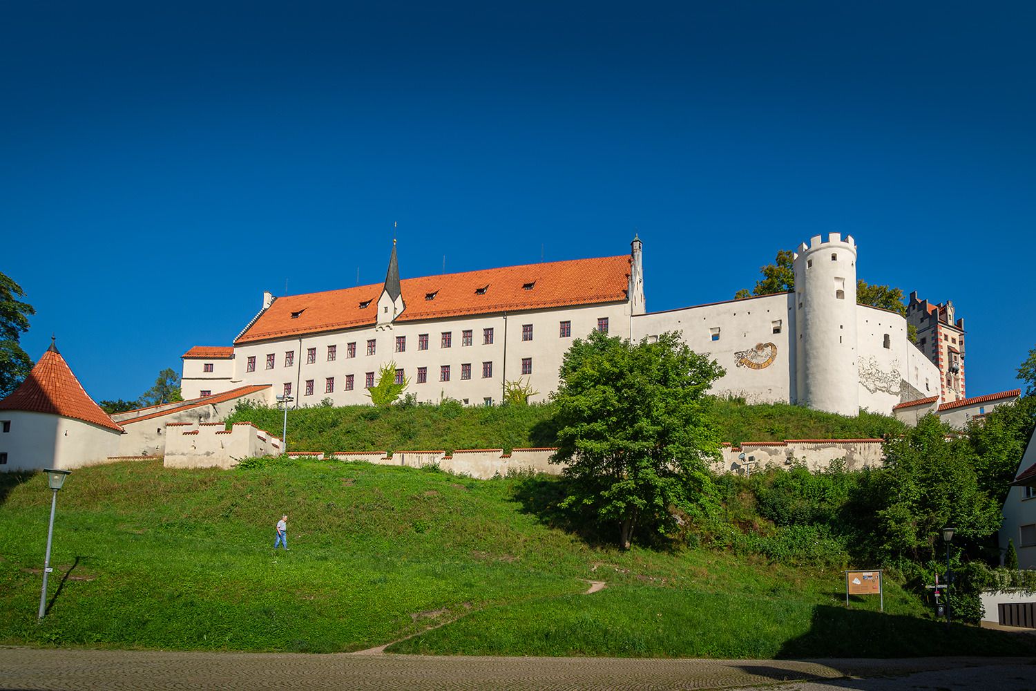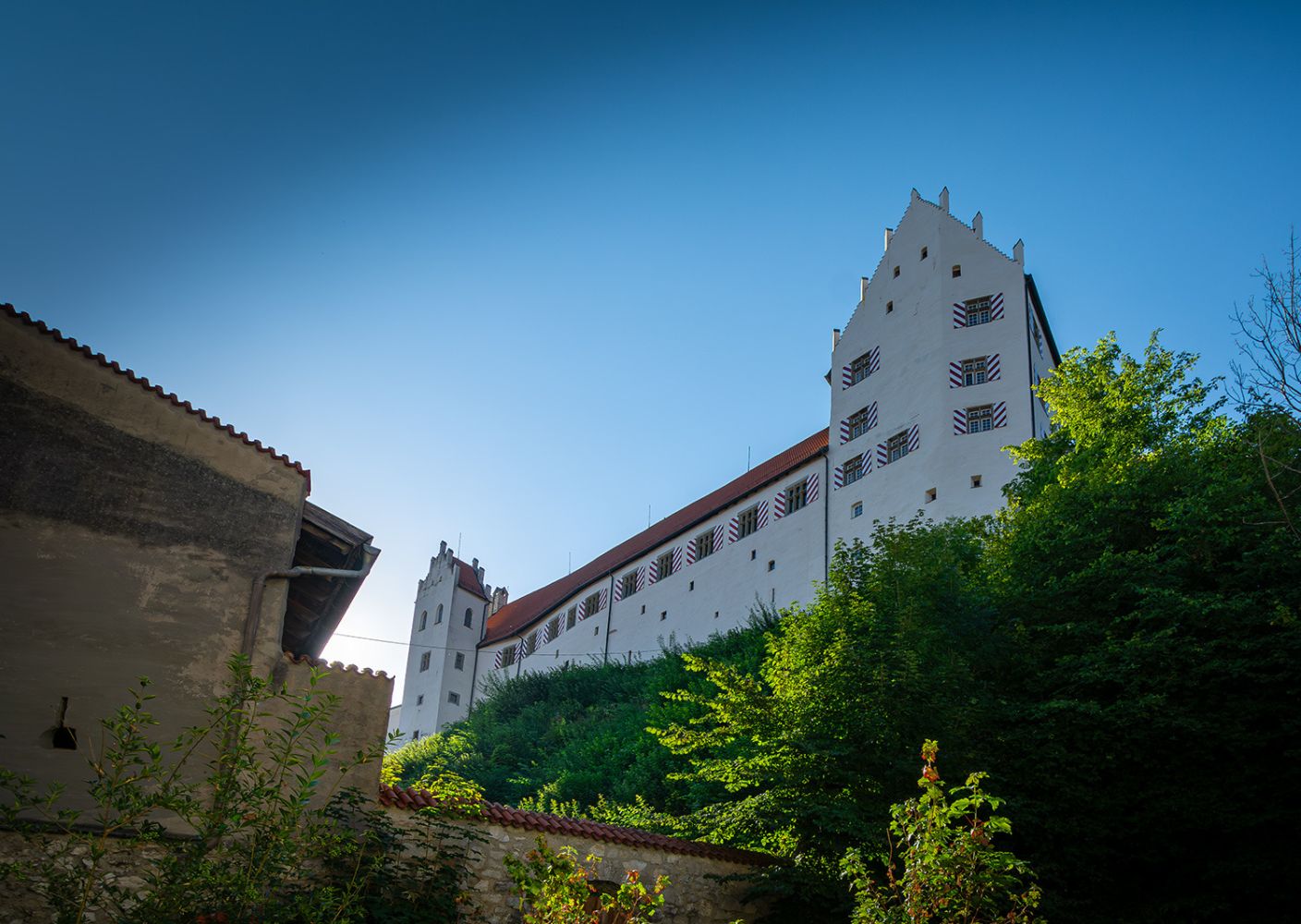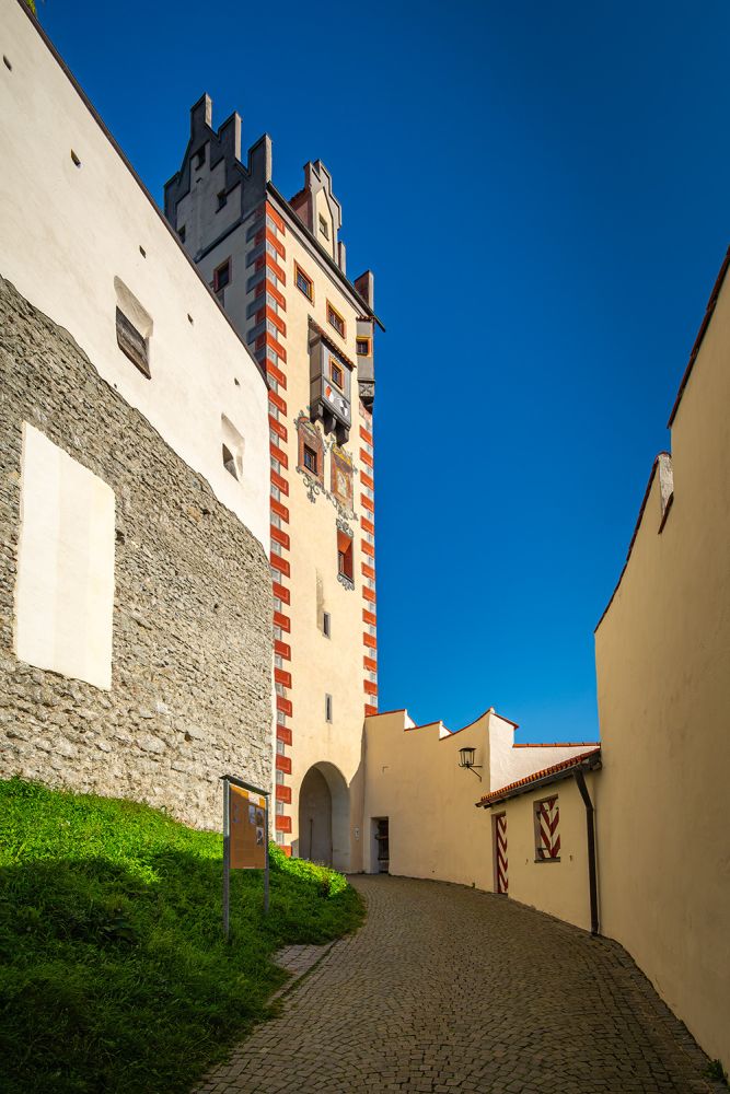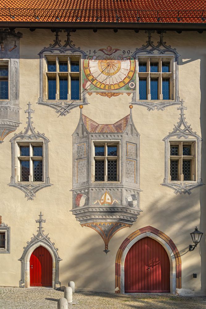 Die Vollendung des Burgschlosses fand erst im Jahr 1322 unter der Leitung des damaligen neuen Stadtherren Bischof Friedrich I. von Augsburg statt. Die heutige prachtvolle Gestalt erhielt das Bauwerk in den Jahren von 1486 bis 1505 unter Federführung von Fürstbischof Friedrich von Zollern (* 1451; † 1505). Besonders sehenswert sind die spätgotischen Illusionsmalereinen an den Fassaden im Schlosshof, der Rittersaal, die Staatsgalerie sowie die städtische Gemäldegalerie, ihren Schwerpunkt auf die schwäbische Malerei der Spätgotik legt.
