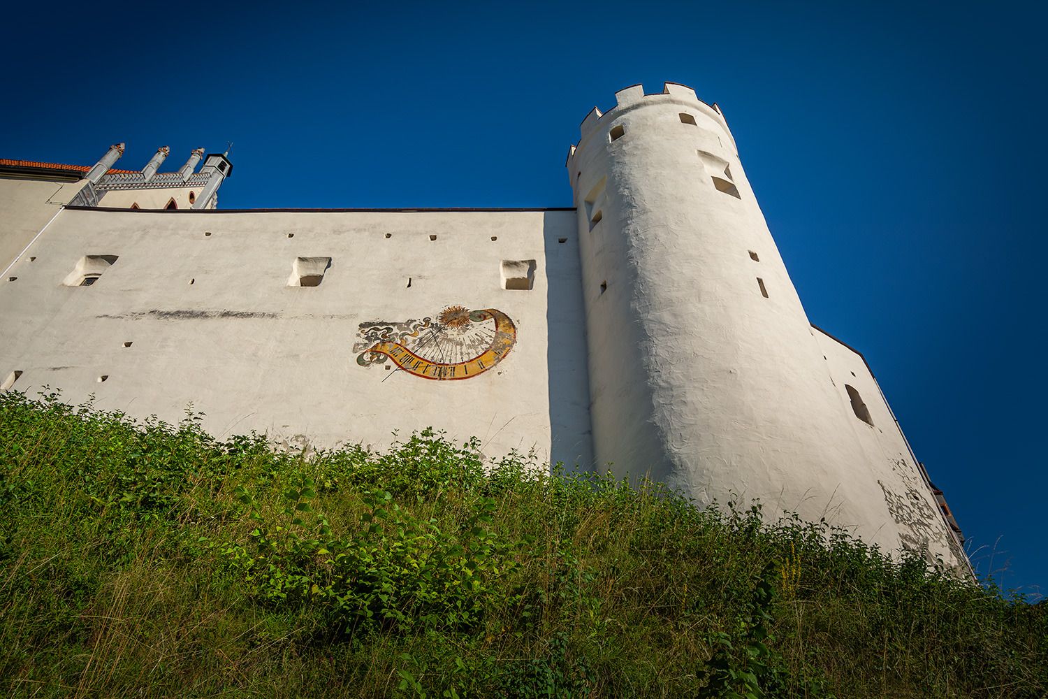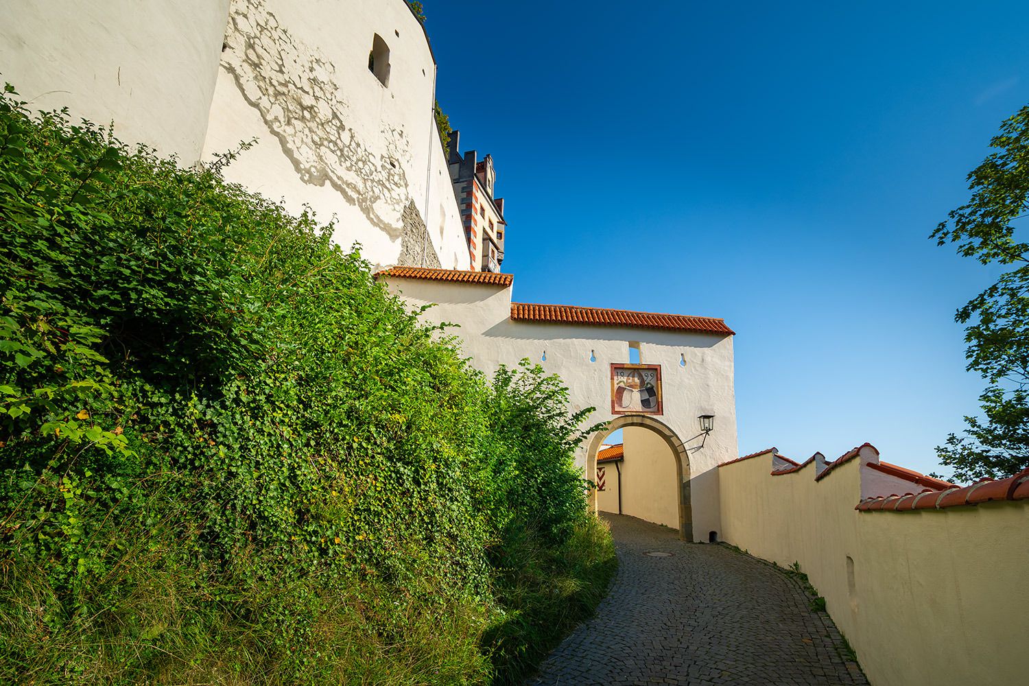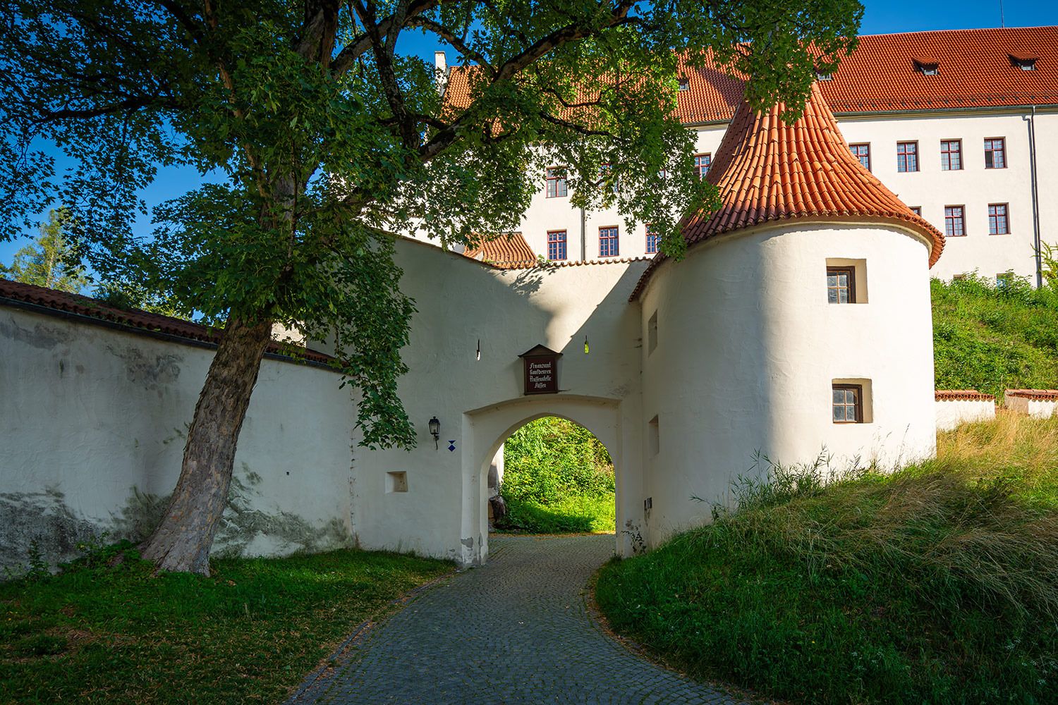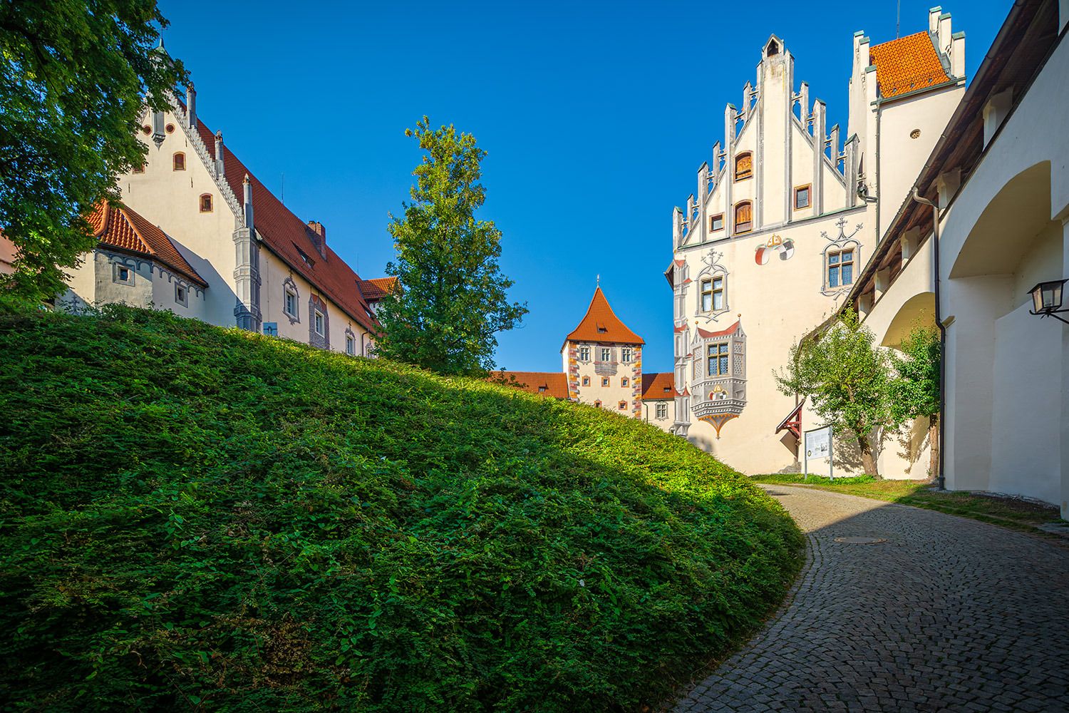 Die Vollendung des Burgschlosses fand erst im Jahr 1322 unter der Leitung des damaligen neuen Stadtherren Bischof Friedrich I. von Augsburg statt. Die heutige prachtvolle Gestalt erhielt das Bauwerk in den Jahren von 1486 bis 1505 unter Federführung von Fürstbischof Friedrich von Zollern (* 1451; † 1505). Besonders sehenswert sind die spätgotischen Illusionsmalereinen an den Fassaden im Schlosshof, der Rittersaal, die Staatsgalerie sowie die städtische Gemäldegalerie, ihren Schwerpunkt auf die schwäbische Malerei der Spätgotik legt.