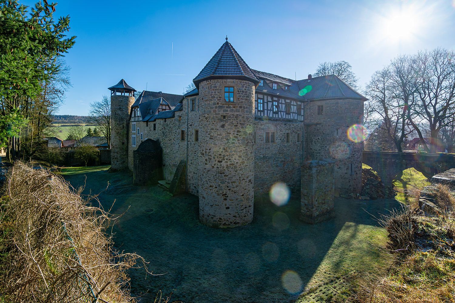 Die Burg Bibra, auch als Wasserschloss Bibra bekannt, befindet sich in der gleichnamigen Ortschaft Bibra im Landkreis Schmalkalden-Meiningen in Thüringen. Sie ist eine historische Burganlage mit einem Wassergraben, die auf das 13. Jahrhundert zurückgeht. Es handelt sich um eine gut erhaltene Anlage mit verschiedenen Gebäuden, darunter ein Bergfried und ein Torhaus. Die Burg wurde im Laufe der Jahrhunderte mehrmals umgebaut und erweitert.