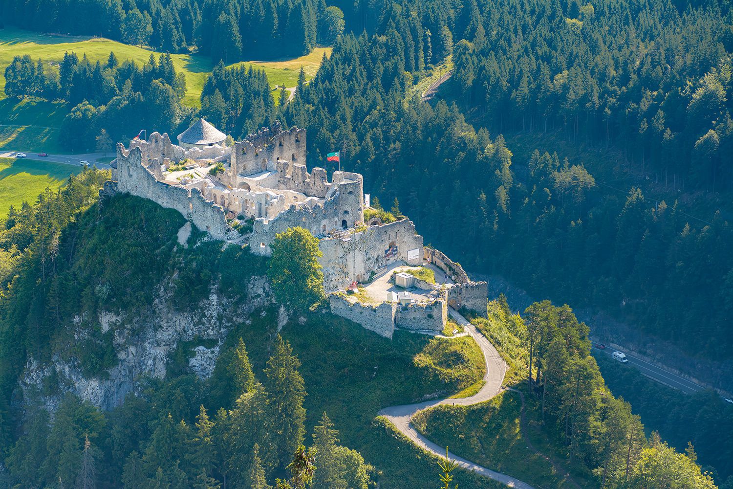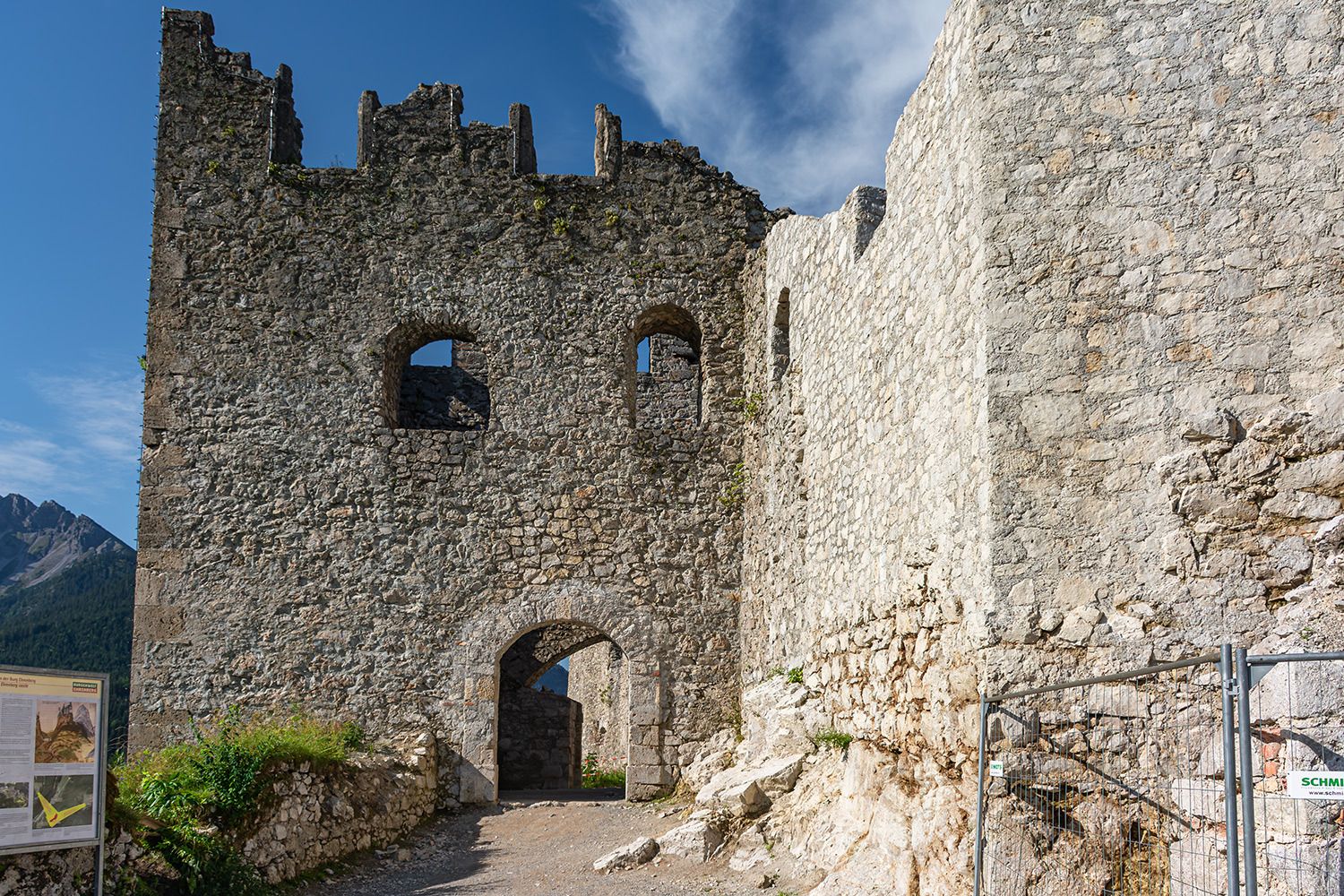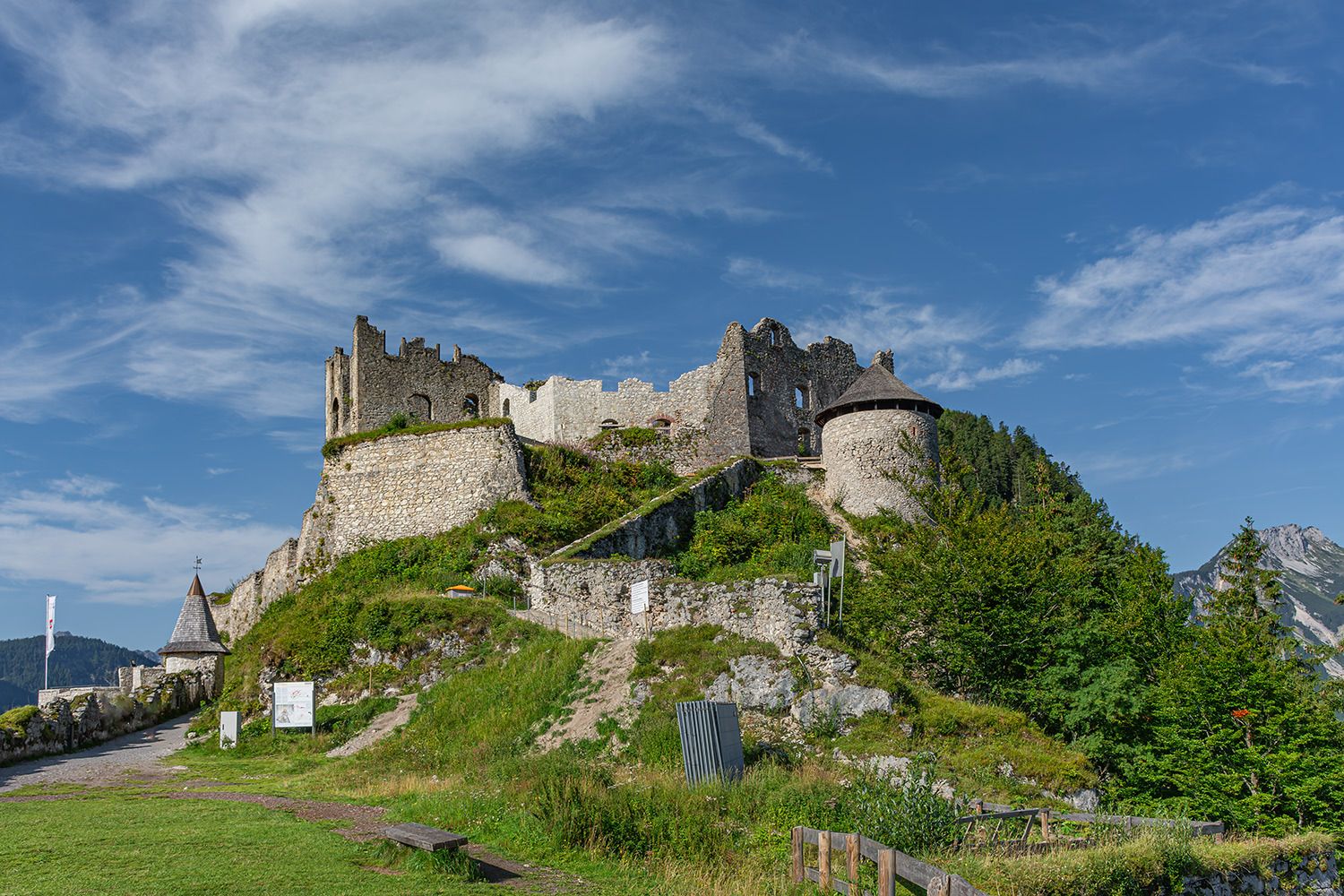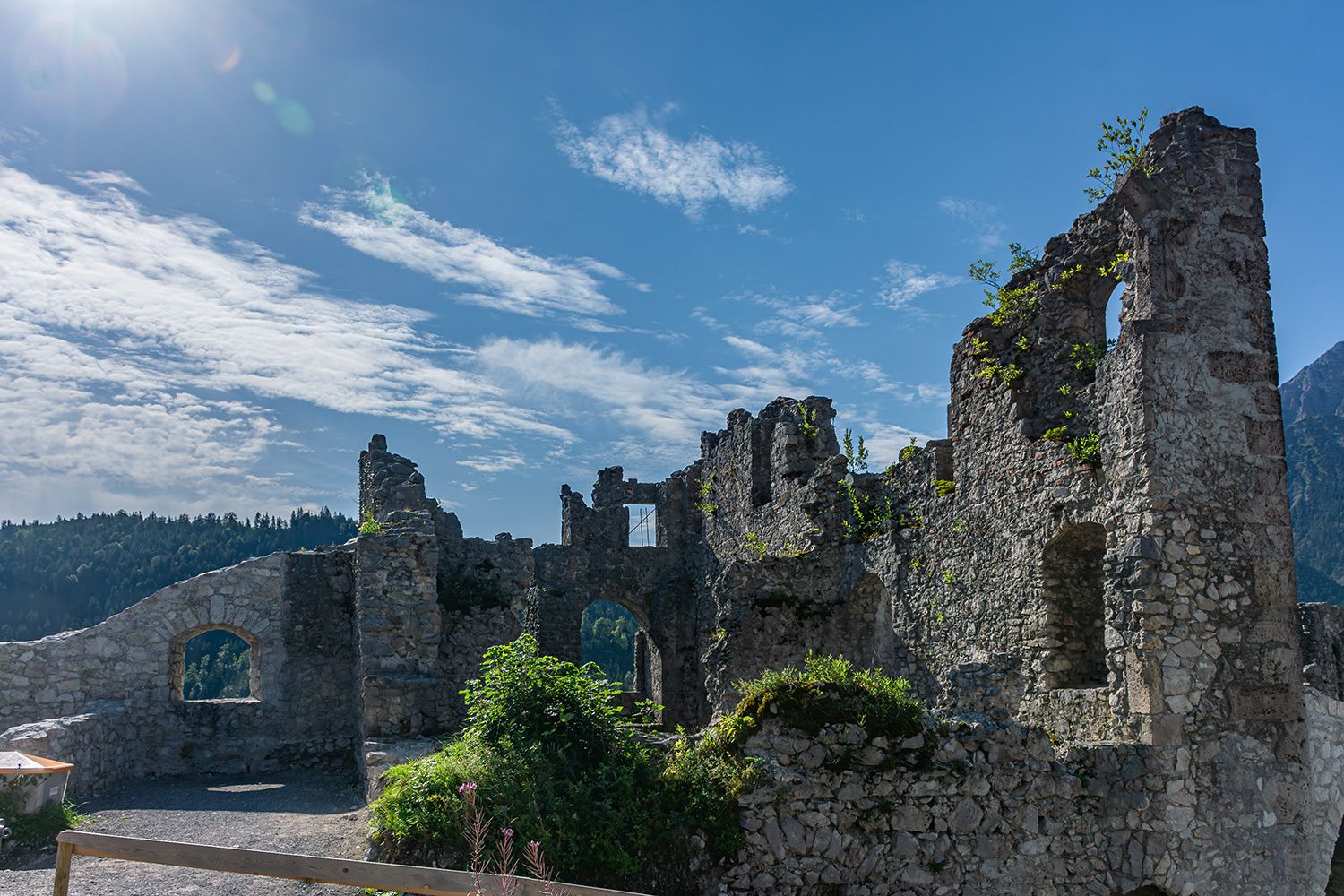 Die Burg Ehrenberg in Reutte, die um das Jahr 1290 entstand, ist ein faszinierendes historisches Wahrzeichen. Sie besteht aus mehreren Teilen, darunter die Festung Schlosskopf, die Festung Claudia, das Fort Claudia, die Ehrenberger Klause und die Burg Ehrenberg. Die Ruine liegt majestätisch über dem Tal und bietet einen atemberaubenden Blick auf die umliegende Landschaft.