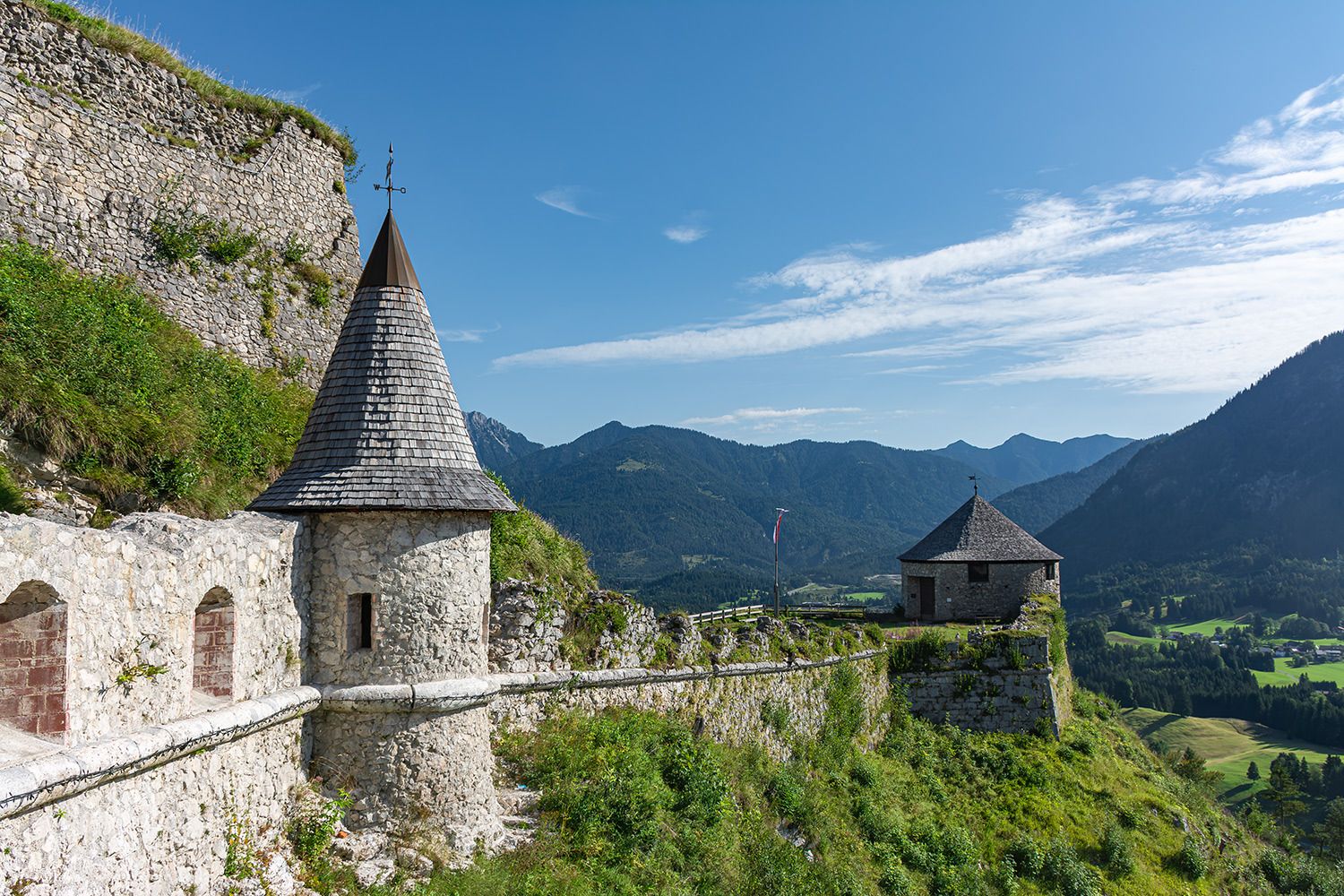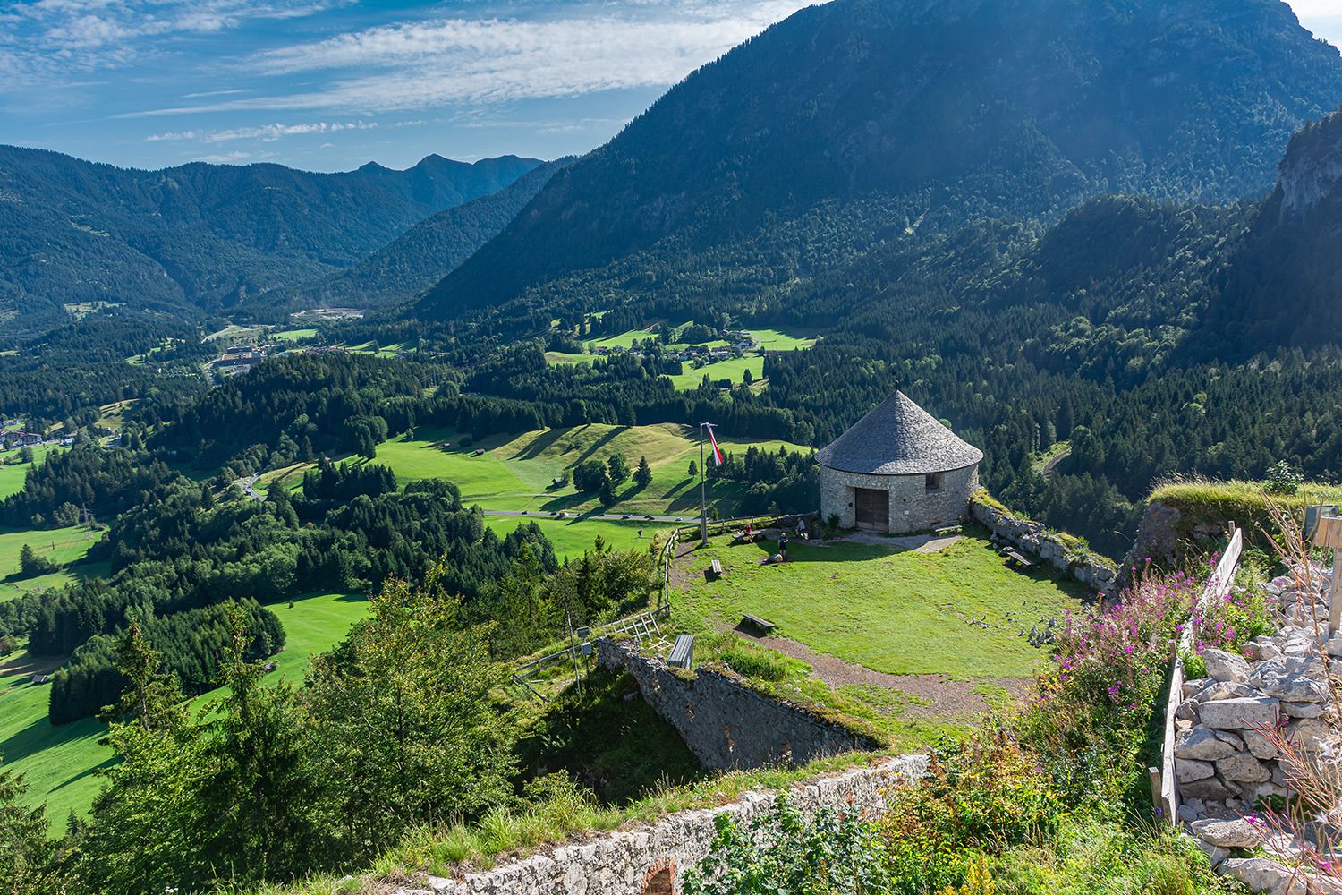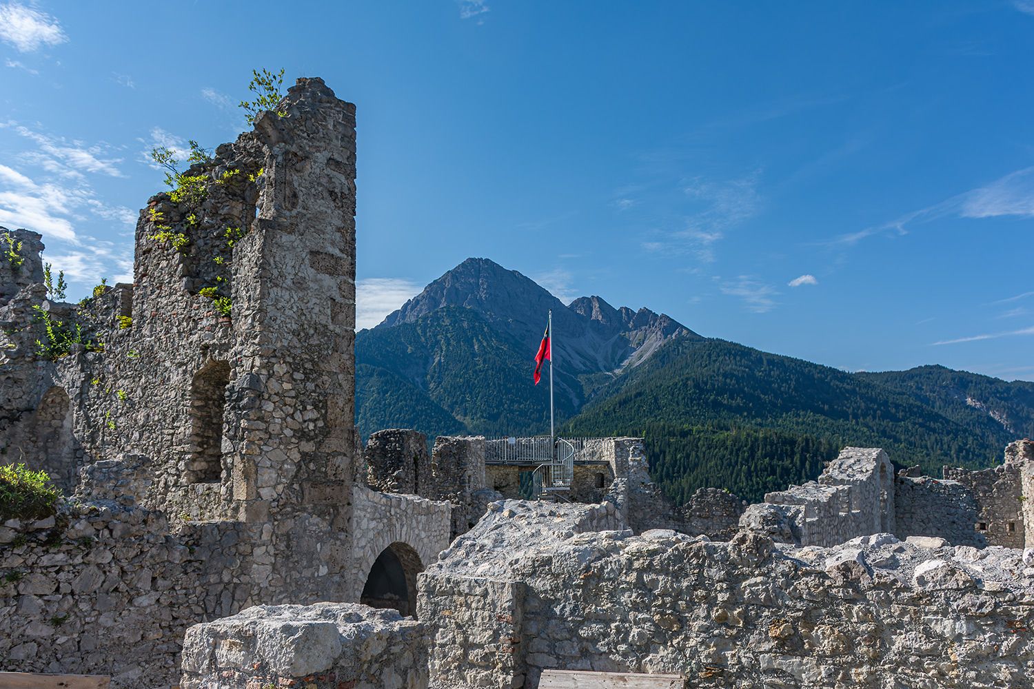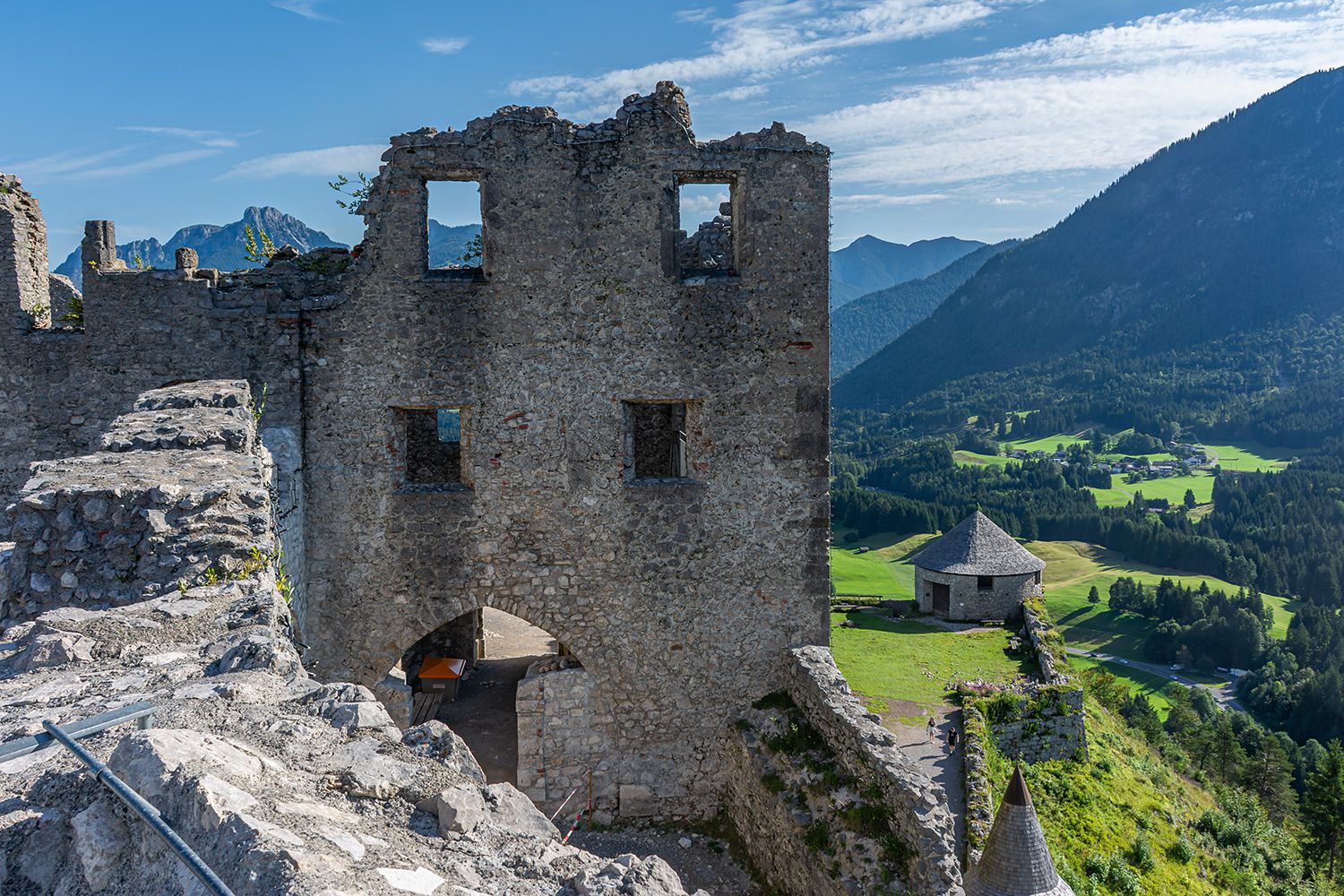 Die Burg Ehrenberg in Reutte, die um das Jahr 1290 entstand, ist ein faszinierendes historisches Wahrzeichen. Sie besteht aus mehreren Teilen, darunter die Festung Schlosskopf, die Festung Claudia, das Fort Claudia, die Ehrenberger Klause und die Burg Ehrenberg. Die Ruine liegt majestätisch über dem Tal und bietet einen atemberaubenden Blick auf die umliegende Landschaft.