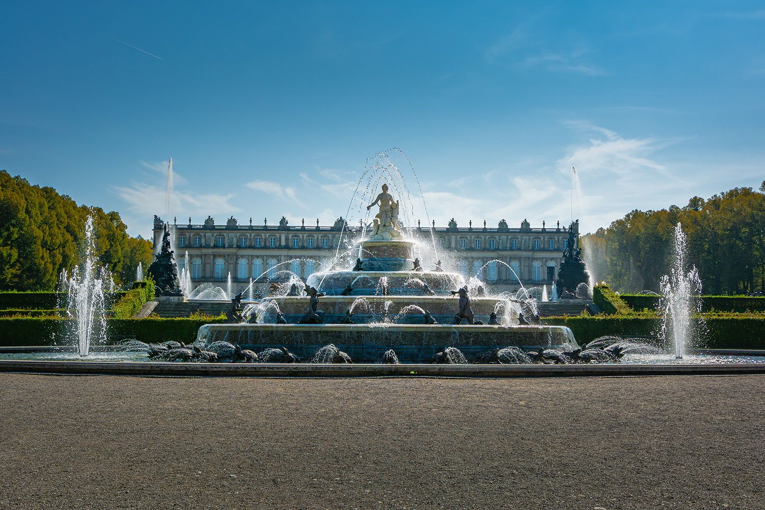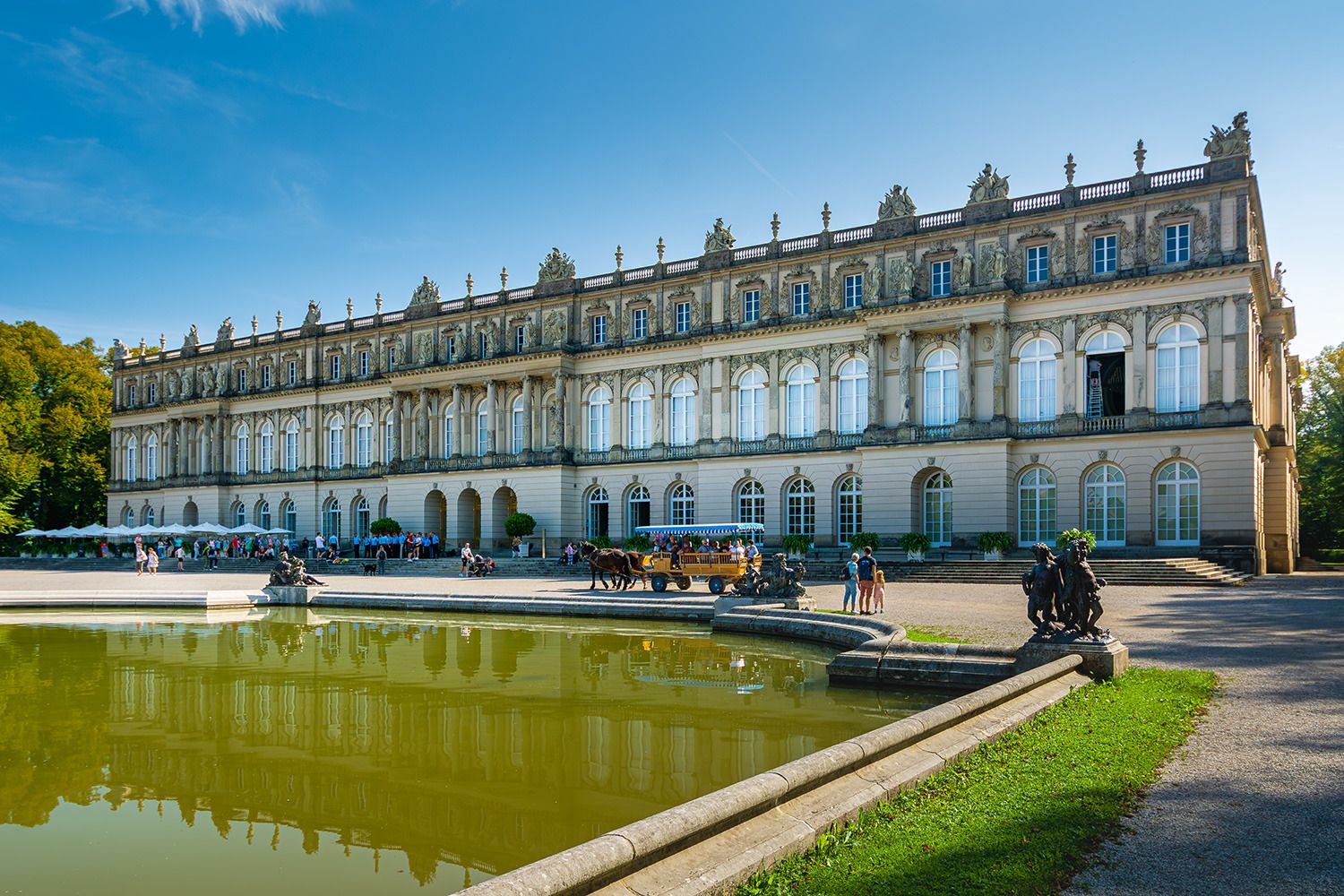 Das Neue Schloss Herrenchiemsee liegt auf der Insel Herrenchiemsee im Chiemsee, Bayern, und ist ein beeindruckendes Beispiel für barocke Architektur und königlichen Prunk. Es wurde von König Ludwig II. von Bayern erbaut und sollte als Hommage an das Schloss Versailles in Frankreich dienen.