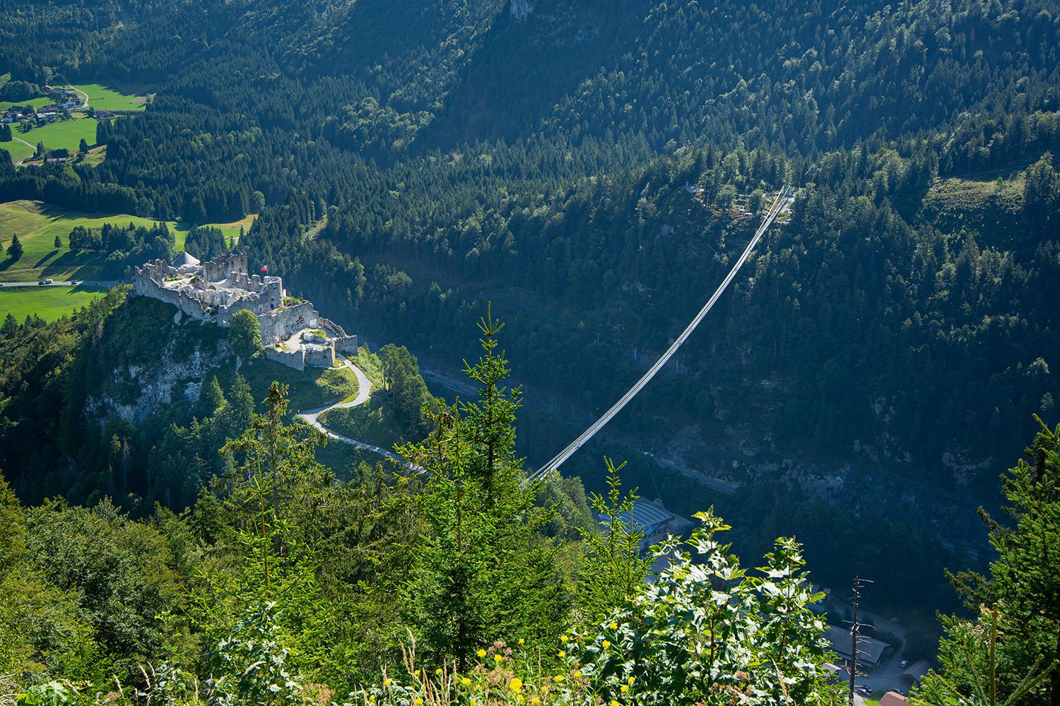 Die "Highline 179" ist eine Hängebrücke in der Nähe von Reutte in Tirol, Österreich. Die Brücke hat eine Gesamtlänge von 406 Metern und bietet den Besuchern eine beeindruckende Aussicht auf die umliegende Landschaft. Die Fußgänger-Hängebrücke verbindet die Ruine Ehrenberg mit dem Fort Claudia und schwingt in einer Höhe von etwa 114 Metern über der Talsohle der Loisach.