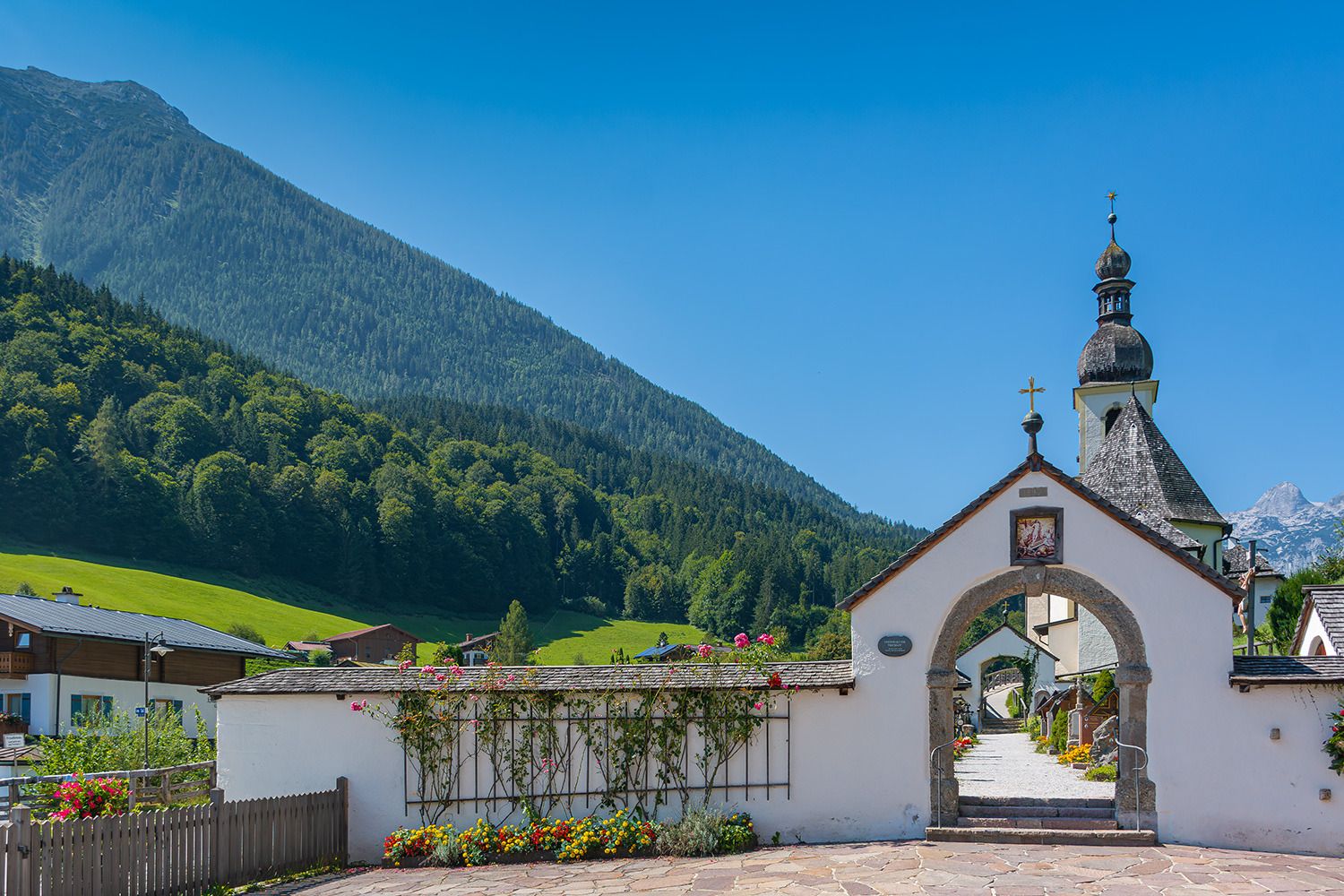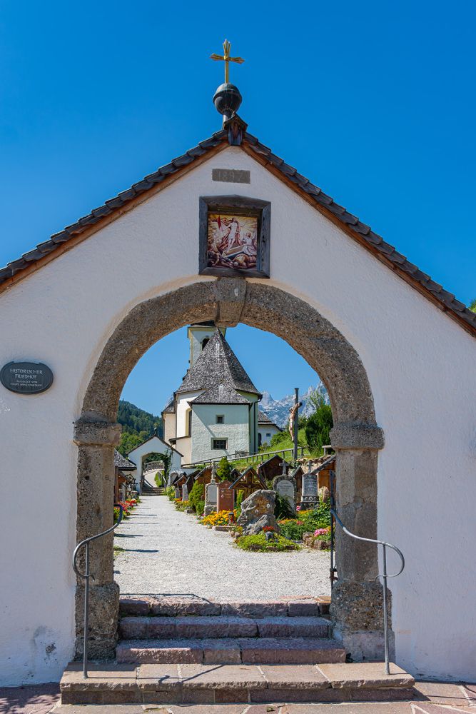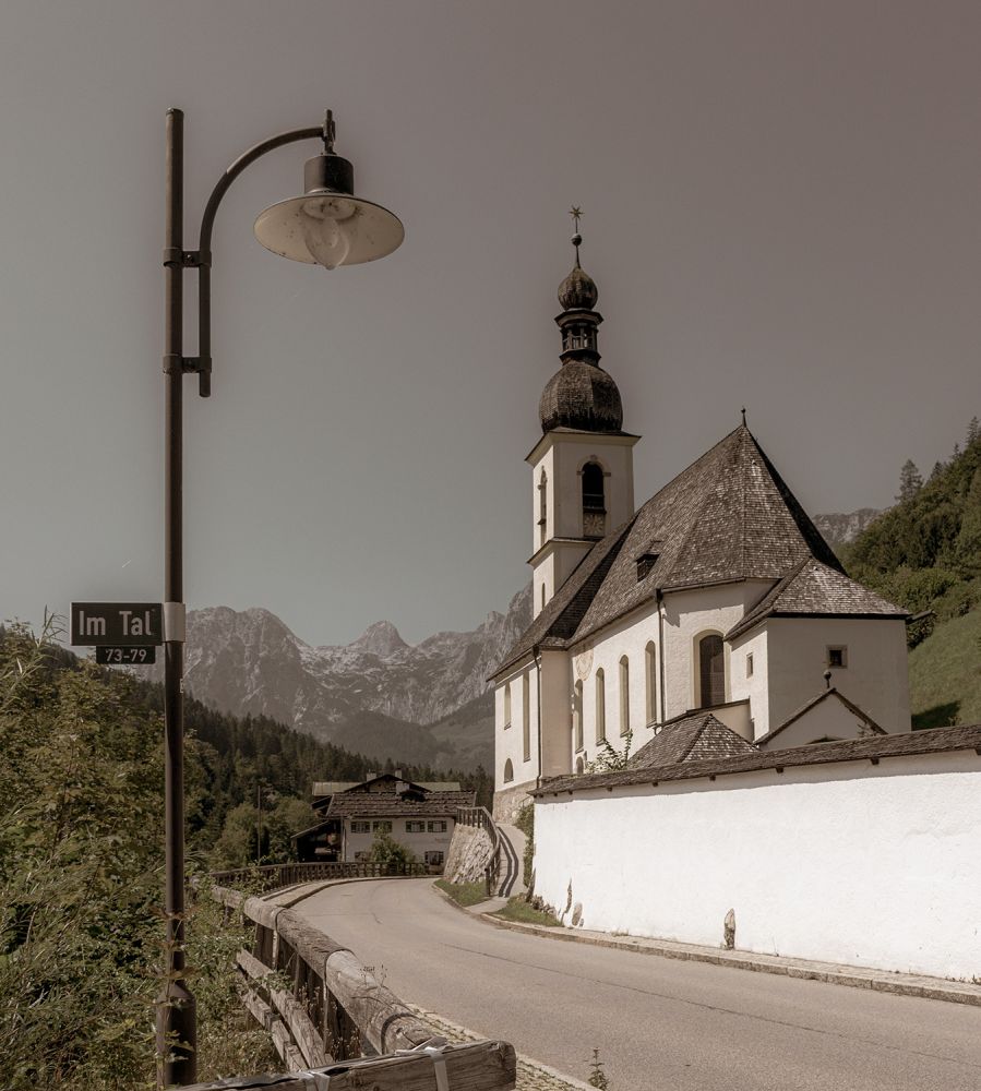 St. Sebastian ist eine malerische Kirche in Ramsau bei Berchtesgaden, Bayern, Deutschland. Sie ist eine der bekanntesten und am häufigsten fotografierten Kirchen der Region und bekannt für ihre atemberaubende Alpenkulisse und ruhige Lage. Hier ein kurzer Überblick: