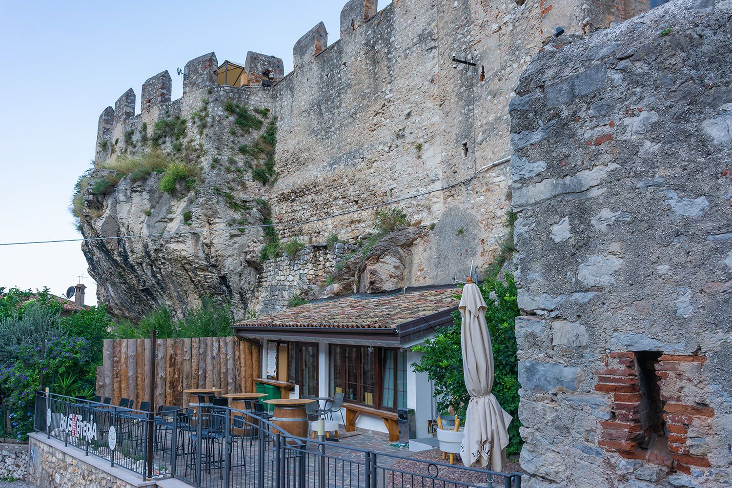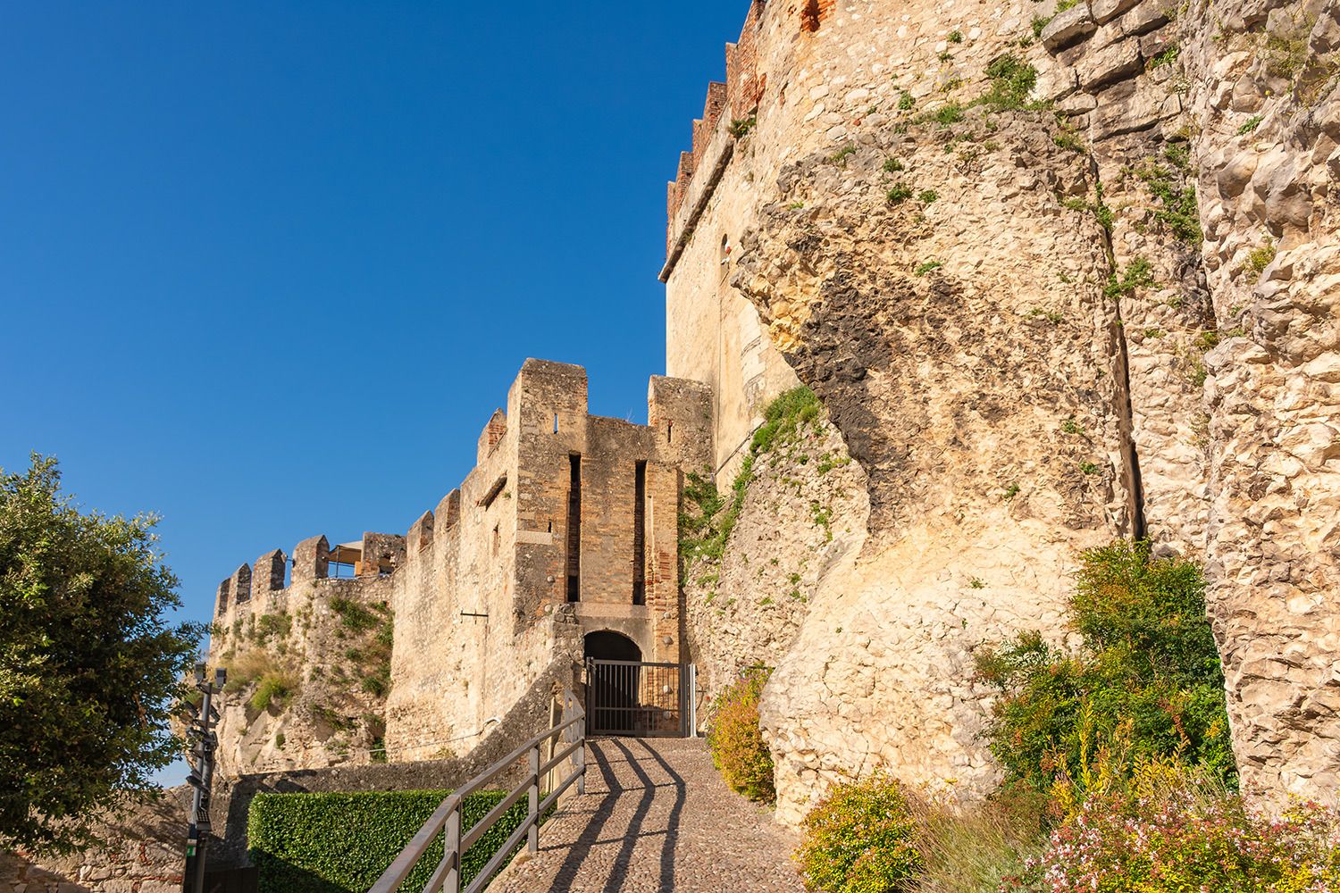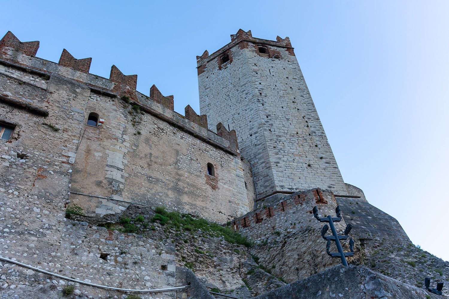 Eines der beeindruckendsten Bauwerke am Gardasee ist mit Sicherheit die Scaligerburg (Castello Scaligero) in Malcesine, die auf einem Felsen am Ostufer überhalb der Stadt thront. Der Ursprungsbau der Burg geht wahrscheinlich auf die Langobarder im 1. Jahrtausends nach Christus zurück. Aus dieser Zeit stammen erste Befestigungen der Anlage. Sehr lohnenswert ist der Aufstieg auf den 31 m hohen Turm, von wo man einen tollen Blick über die Stadt Malcesine, den Gardasee und den Monte Baldo (einer Bergkette in den Südlichen Kalkalpen) hat. Aufgenommen wurde dieses Foto von einem der zahlreichen Ausflugsschiffe in Malcesine.