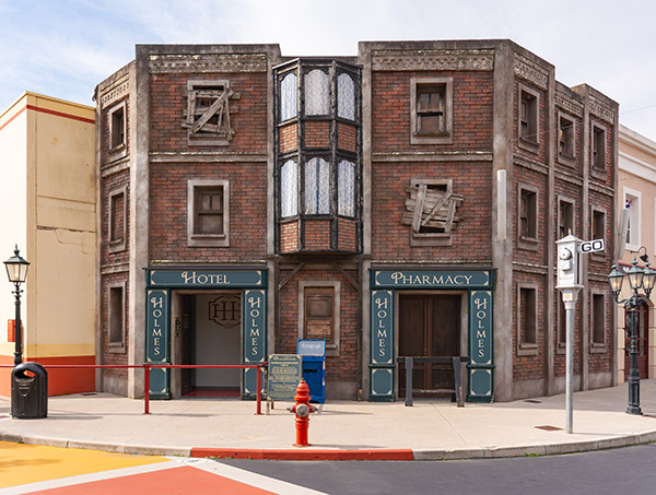 Das Horrorhaus "Holmes Hotel" befindet sich eigentlich im Movieland Park bei Lazise am Gardasee in Italien. Aber in dieser Fotomontage wurde es mit Hilfe von Photoshop in eine mystische und passende Umgebung gestellt, sodass das Hotel jetzt eine rätselhafte und geheimnisvolle Atmosphäre hat.