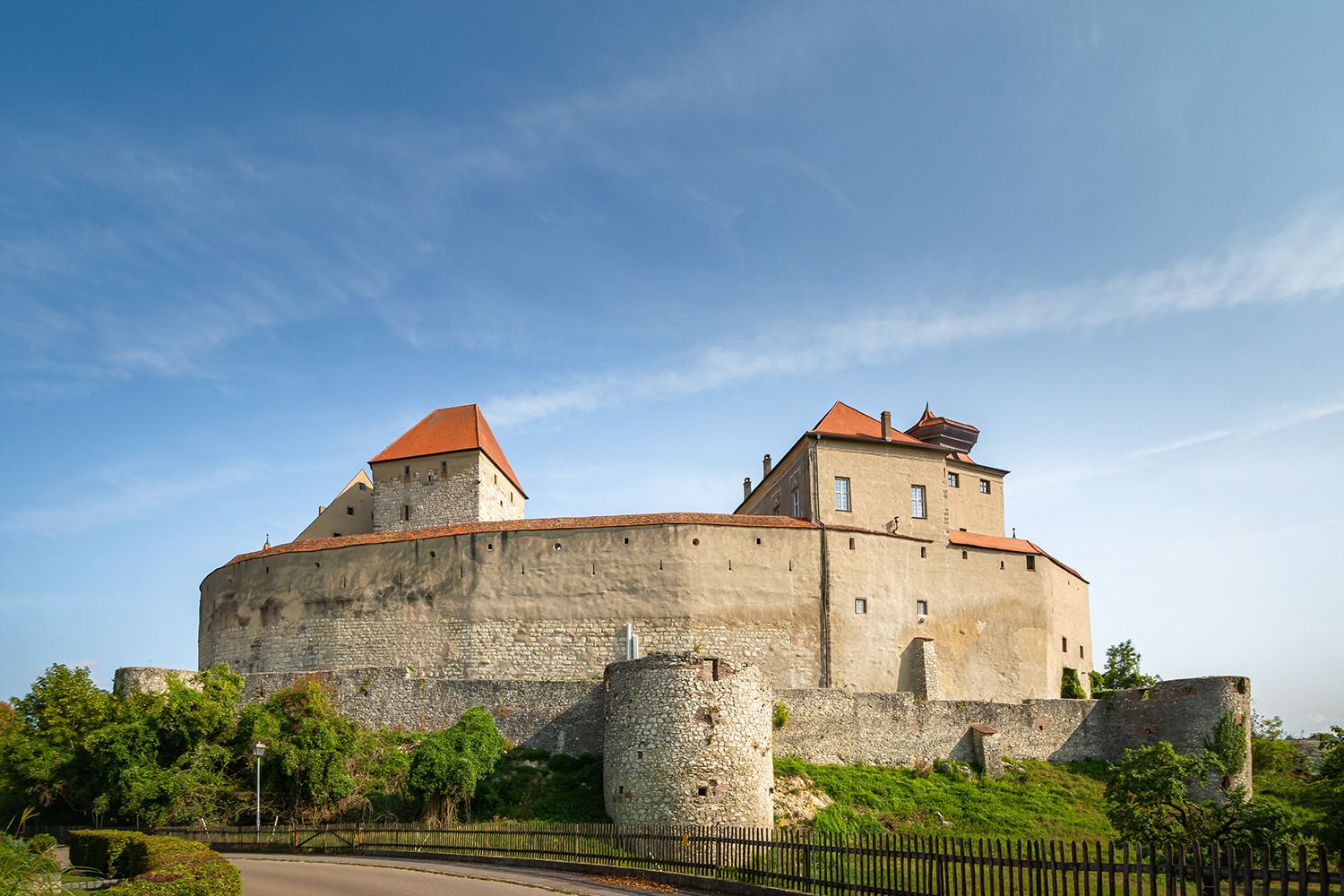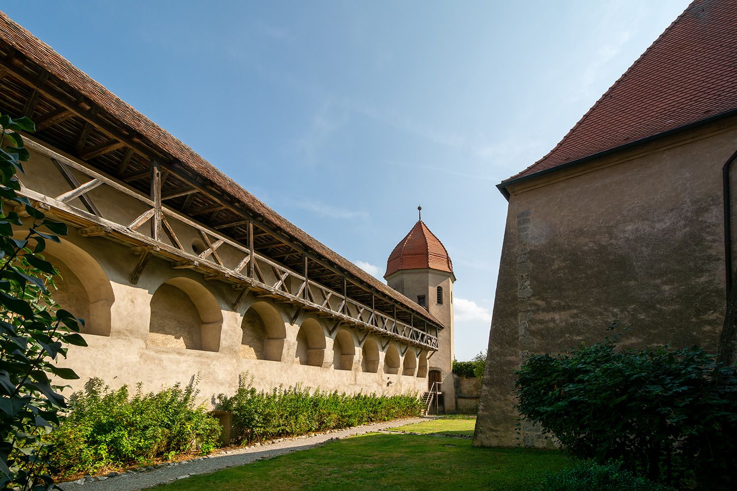 Die Harburg ist eine der größten, ältesten und am besten erhaltenen Burganlagen in Süddeutschland. Sie ist eine Höhenburg (480 m über Normalhöhennull) und liegt an der Romantischen Straße oberhalb der gleichnamigen Stadt Harburg in Schwaben (Bayern). Die erste offizielle Nennung dieser Burg geht bis in das Jahr 1150 zurück. Damals berichtete der erst 13-jährige Staufer Heinrich-Berengar (* 1137; † 1150) in einem Brief an seine Tante in Konstantinopel, die Kaiserin Eirene von Byzanz (* um 1110; † 1158/60), und deren Gatten Manuel I. Komnenos" (* 1118; † 1180), dass er sich von der Harburg zur belagerten Burg Flochberg aufgemacht habe, um seinen Gegner Welf IV. (* um 1030/1040; † 1101) anzugreifen. Die Schlacht ging zugunsten des jungen Königs aus. So wurde die Burg erstmals als Stauferburg urkundlich belegt. Jedoch starb der junge König noch im selben Jahr an einer Krankheit und wurde möglicherweise im Kloster Lorch (Hauskloster der Staufer) beigesetzt. Zwei Jahre später wurde sein Neffe, Friedrich von Schwaben (* um 1122; † 1190) - Barbarossa, zum römisch-deutschen König gewählt und regierte bis 1190 als Kaiser des römisch-deutschen Reiches das Land. Im Jahr 1299 wurde die Burg von König Albrecht I. (* 1255; † 1308) aus dem Haus Habsburg an die Grafen von Oettingen, einem edelfreien fränkischen und schwäbischen Adelsgeschlechts im Riesgau, verpfändet. Als die evangelische Linie Oettingen-Oettingen im Jahr 1731 ausstarb ging die Burg in den Besitz des Hauses Oettingen-Wallerstein über, einer katholischen Linie, die noch heute Eigentümer dieser Burganlage ist. Die Harburg besticht vor allem mit ihren zahlreichen Gebäuden, die einen Schleier aus nahezu allen Stilepochen werfen und Bauwerke aus der Zeit der Romantik, Gotik, Renaissance sowie des Barocks freilegen. Diese Burganlage verfügt auch über einen Burgbrunnen (Bild), der einst eine Tiefe von 129 Meter gehabt haben soll und bis auf den Wörnitzspiegel reichte. Heute hat der Brunnen nur noch eine Tiefe von 48 Meter, da er im Laufe der Zeit instabil wurde und teilweise einstürzte. Einzigartig ist die im 15. Jahrhundert errichtete und besonders gut erhaltene Ringmauer mit Wehrgängen, die für die Verteidigung mit Feuerwaffen ausgelegt und mit vielen Mauertürmen bestückt ist. Die dem Plateau zugewandte Seite der Burg war für Angriffe in der damaligen Zeit am anfälligsten und wurde deswegen zusätzlich durch einen Zwinger mit halbrunden Mauertürmen geschützt (Bild). Das zweite Burgtor, welches den Weg zur Kernburg ebnet, besitzt ein vollständig erhaltenes Fallgatter (Bild). Der älteste Teil der heute sichtbaren Burg ist wohl der um 1200 errichtete Bergfried aus Buckelquadern, der seinen mittelalterlichen Charakter bewahrt hat. Er hat 3 Meter starke Mauern und eine Höhe von 16 Meter, die sich in den oberen Etagen reduzieren. Das Besondere an diesem Bauwerk ist ein in der Mauer verlaufender Abortkanal, in dem es damals sehr stark nach Fäkalien gerochen haben muss. Der Bergfried war eigentlich als letzte Zufluchtsstätte für die Bewohner der Burg vorgesehen, wenn sie angegriffen wurden und die Feinde schon in die Burg eingedrungen waren. In der frühen Neuzeit wurde der Bergfried als "Diebsturm" zum Gefängnis mit zwei Folterkammern umfunktioniert. Eine der Folterkammern konnte zur Folter der Gefangenen mit einem Ofen aufgeheizt werden, so dass es in diesem Raum sehr heiß wurde. Der östliche Bergfried, der Faulturm, wurde im 18. Jahrhundert zum Treppenhaus für den Saalbau umgebaut. Weitere Gebäude sind: die Vogtei, der Kastenhaus, der Pfisterbau, der Saalbau, der Fürstenbau sowie die Schlosskirche St. Michael.