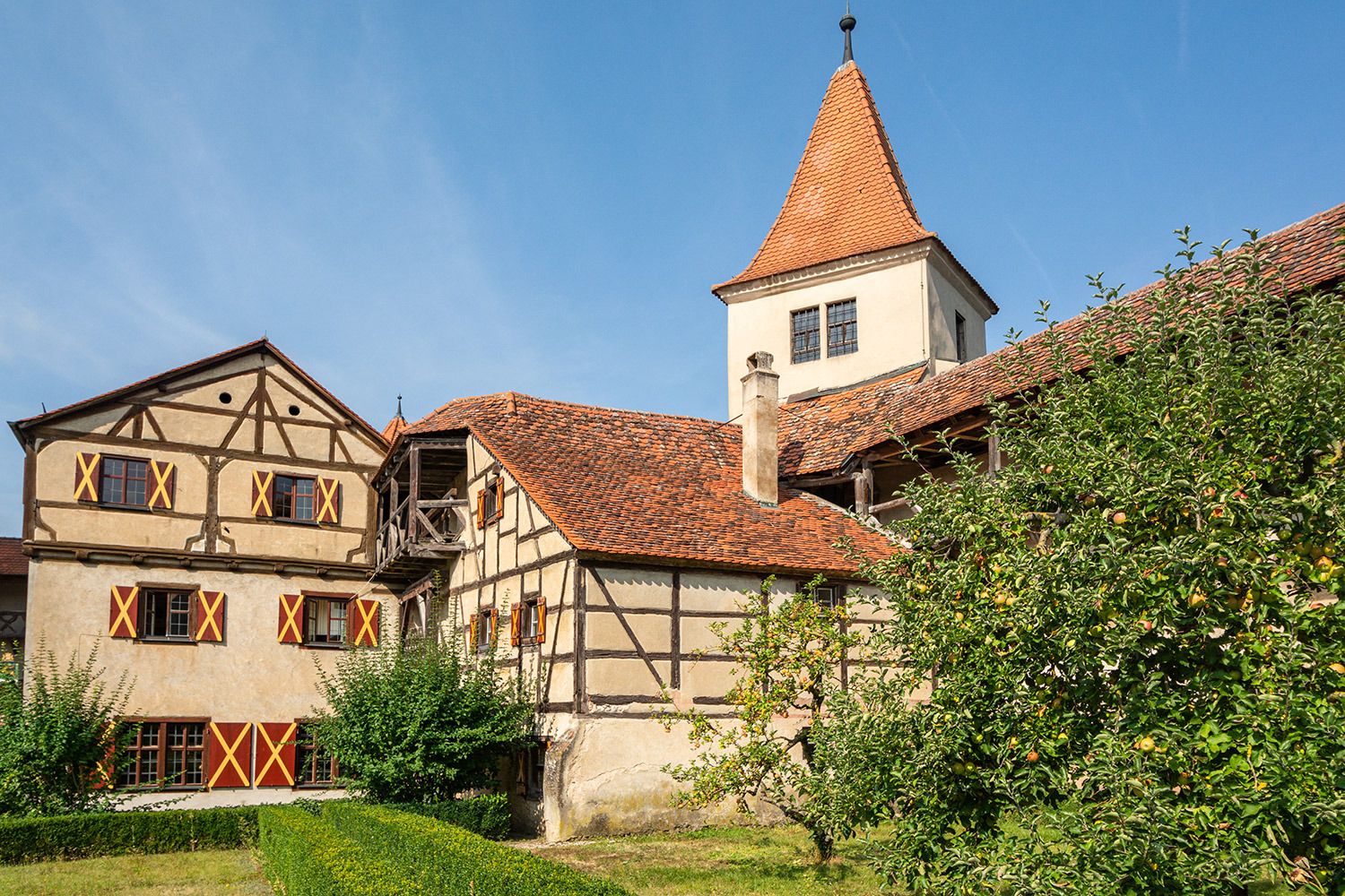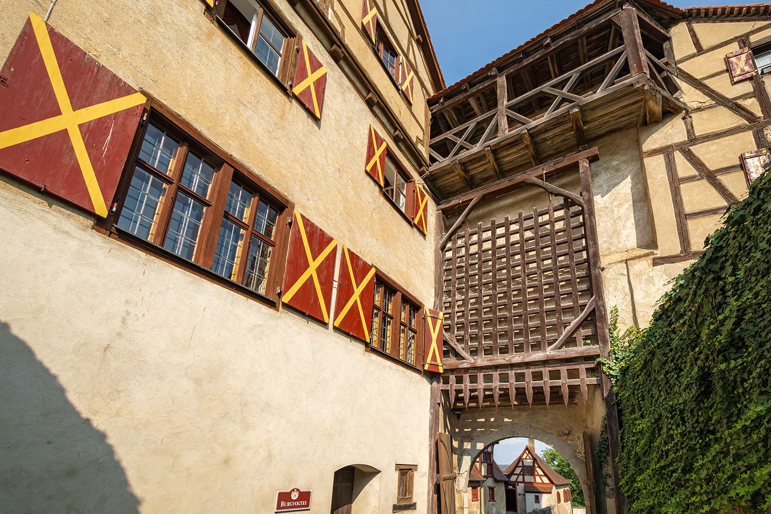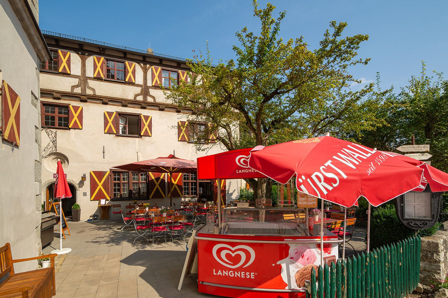 Burg Harburg - Innenhof mit Pfisterbau (links), Fürstenbau (rechts) und Brunnen