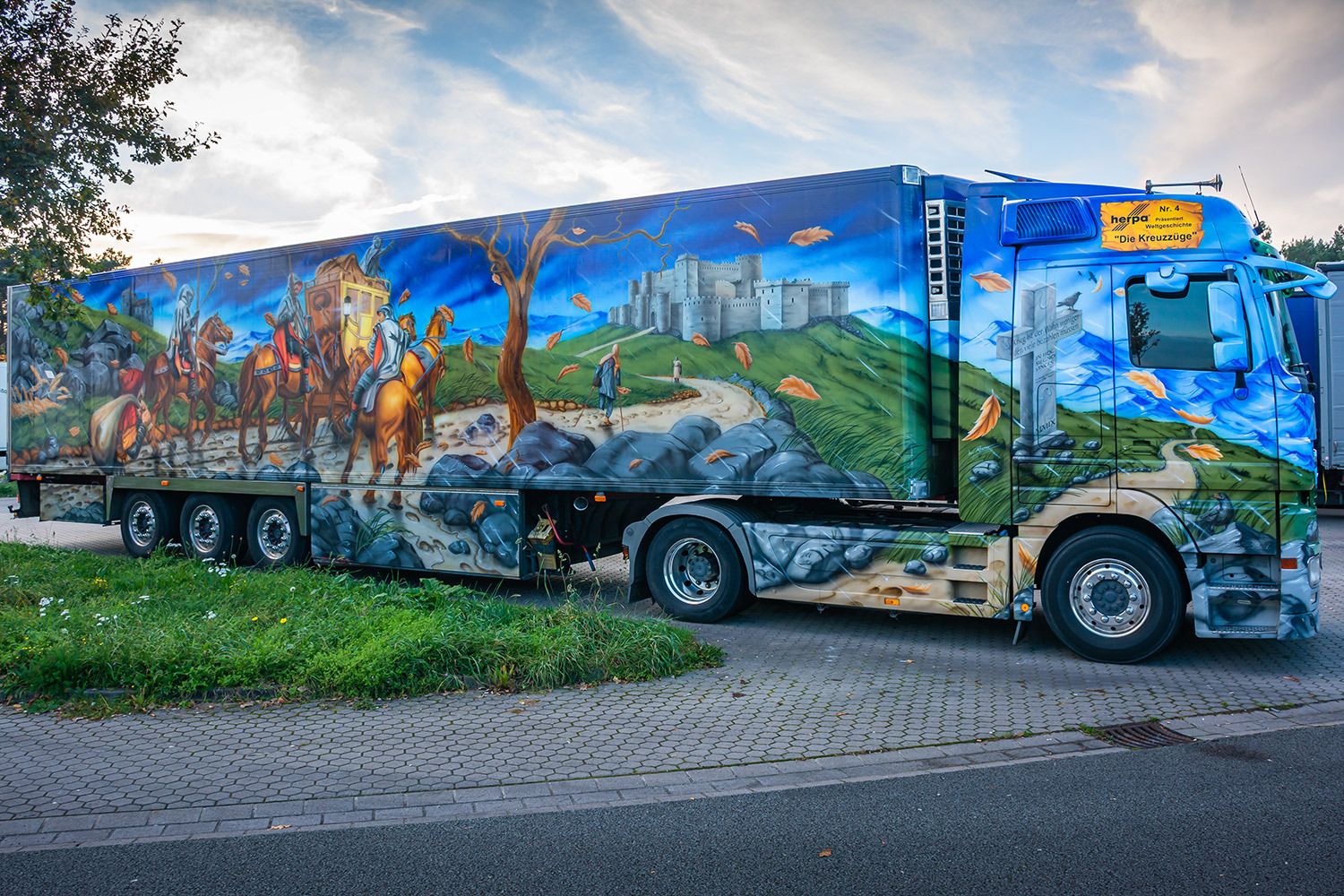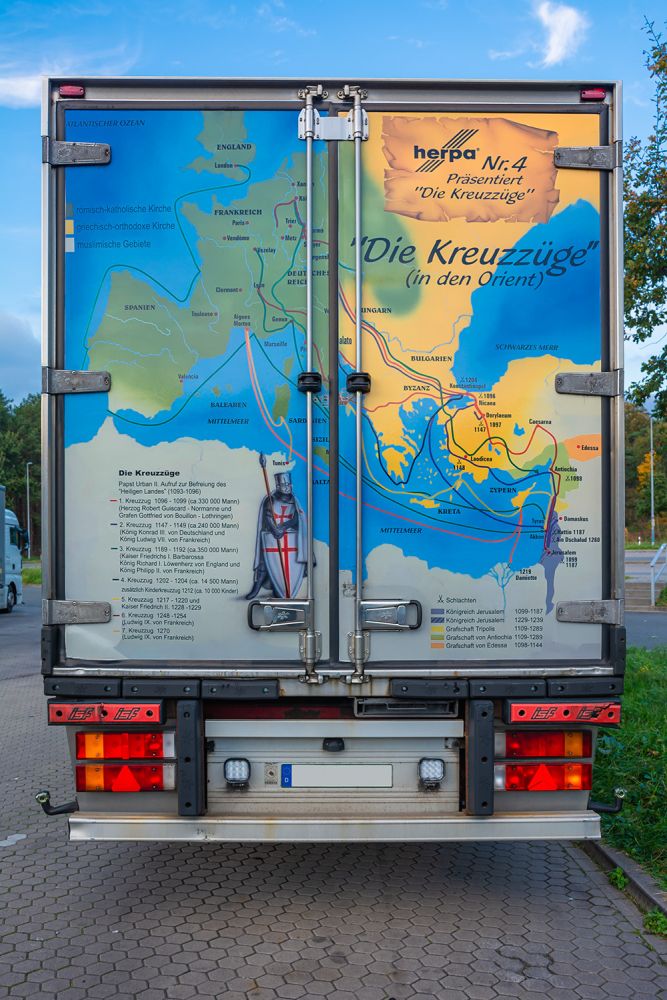 Der Herpa-Truck Nr. 4, "Die Kreuzzüge", unterwegs mit dem Actros von Mercedes Benz.